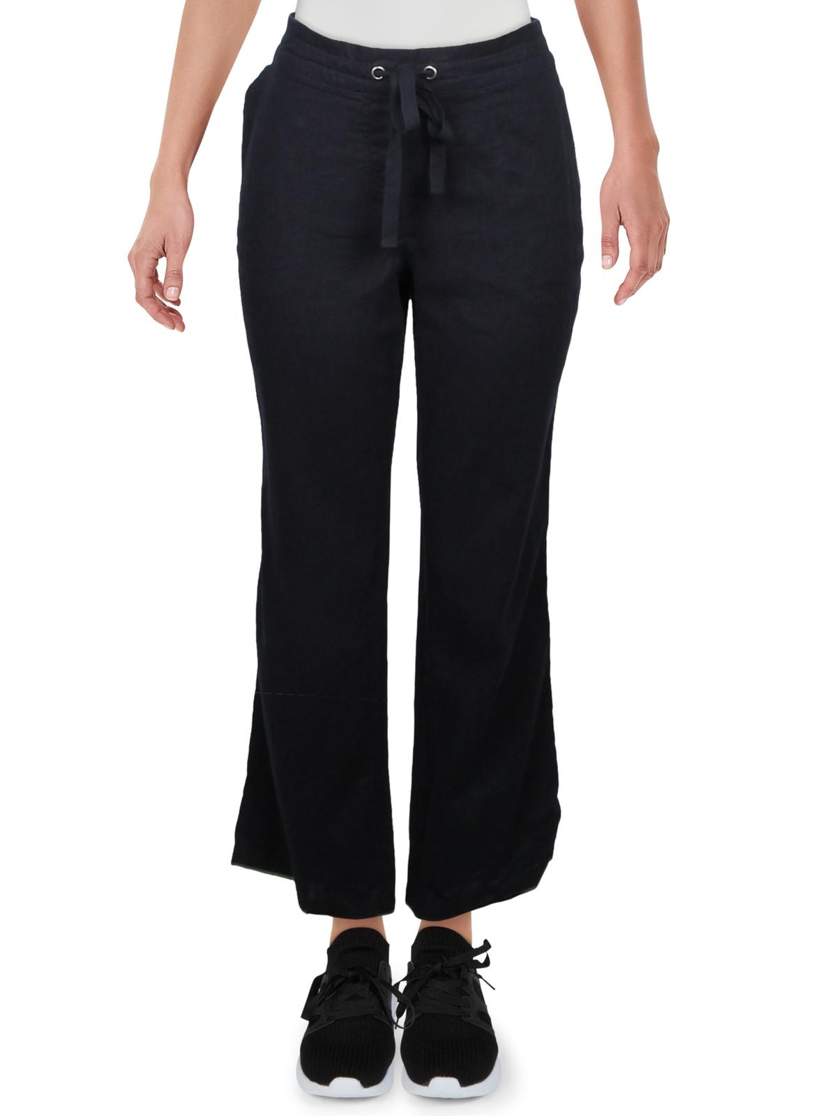 Per Se Womens Linen Drawstring Lounge Pants Navy L Walmart Com